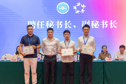 蔡国平为谢淳恺发放秘书长聘书,为张炜祎、殷天奇发放副秘书长聘书。