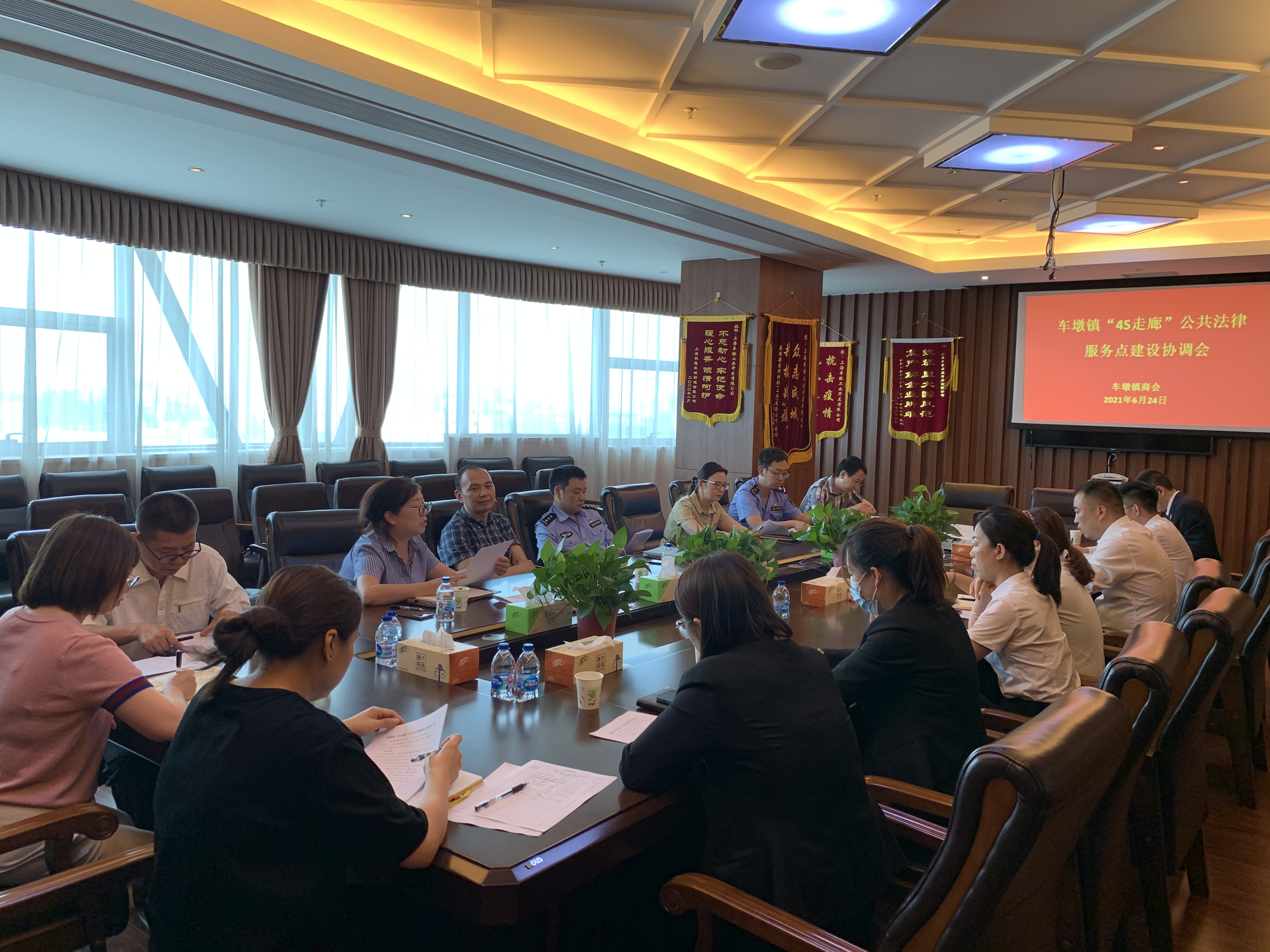 6月24日,为加快构建覆盖多领域、全方位的公共法律服务体系,拓展服务平台,延伸服务触角,松江车墩镇商会在智兆大厦6楼会议室召开“4S走廊”公共法律服务点建设协调会。经发办、司法所、市场监管所、派出所、工业公司负责人、相关4S商会会员企业负责人、商会法律顾问及商会工作人员出席会议。会议由车墩镇经发办主任、镇商会常务副秘书长周慧来主持。