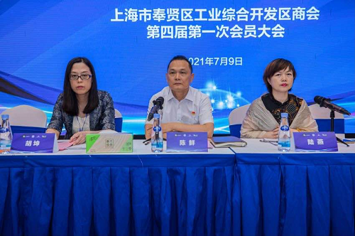 陈鲜宣读《上海市奉贤区工业综合开发区商会第四届理事会、监事会候选人批复》。