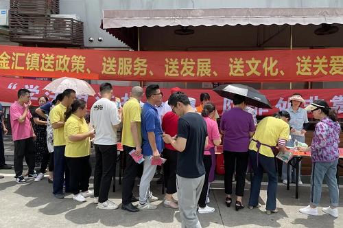 为了方便企业职工群众,此次活动充分利用“午间一小时”,金汇镇各部门、单位的党员干部和职工群众主动放弃中午休息时间,深入厂区开展设摊服务。