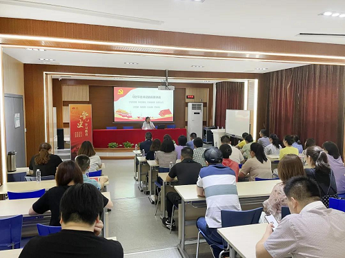 设摊活动后,市党代表、金汇镇党史宣讲团讲师李翠华为企业党员上《学习党史汲取力量 矢志践行初心使命》专题党课。