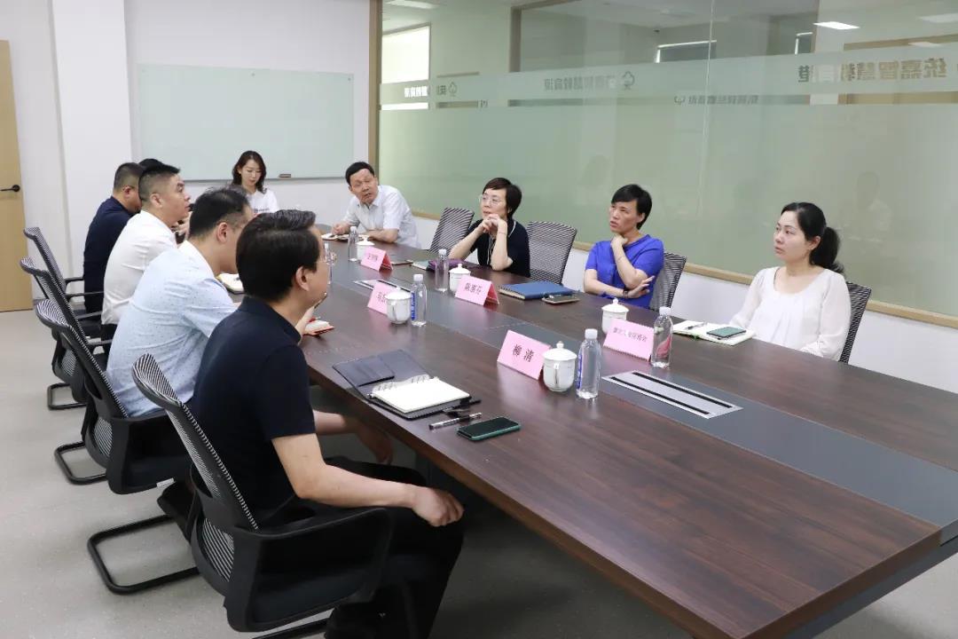 王宇伟一行首先参观了统嘉智慧教育港,听取统嘉集团董事长颜忠标关于集团整体情况、教育港定位及未来发展目标等方面的介绍。