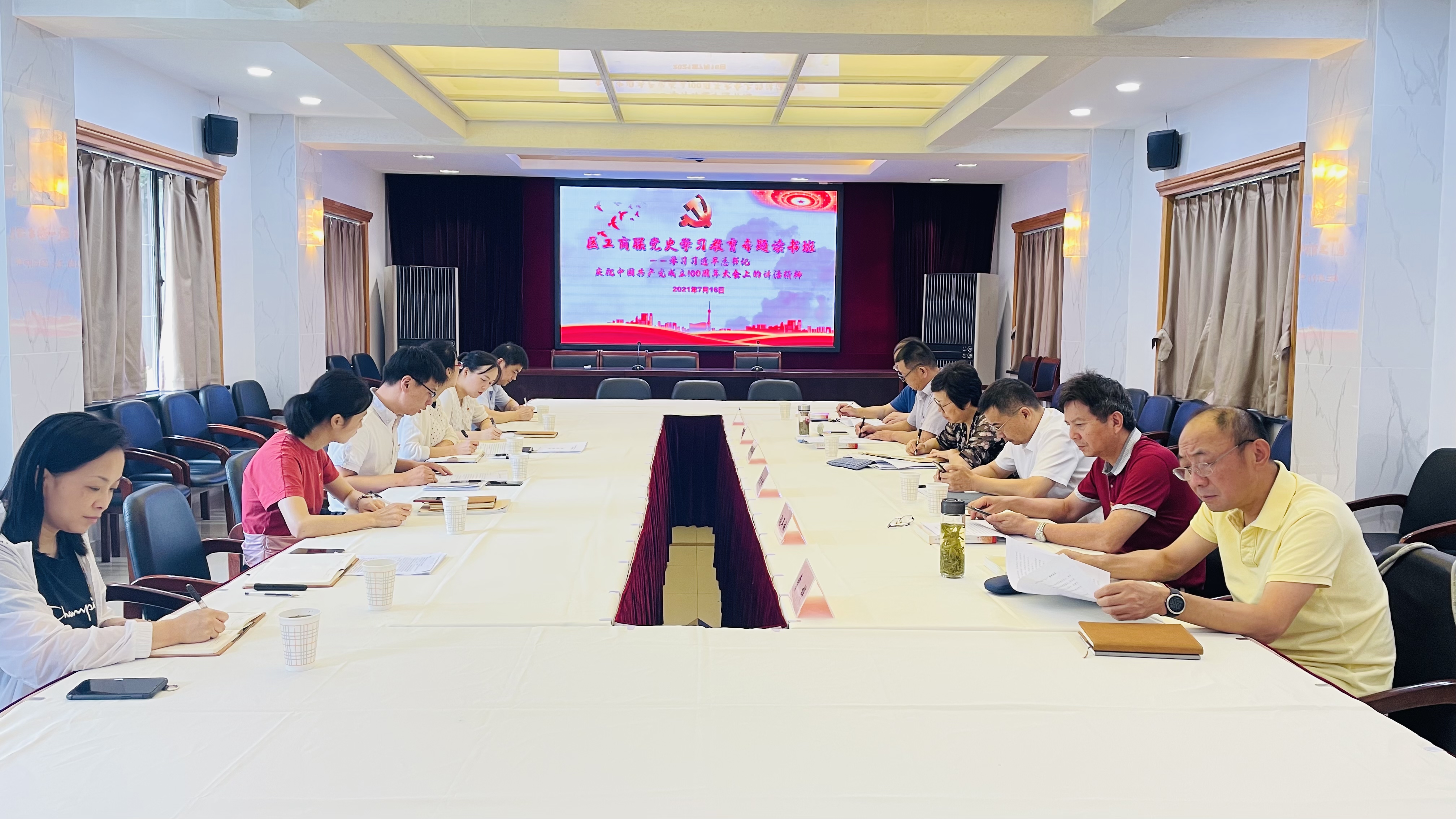 7月16日,松江区工商联党支部开展党史学习教育专题读书班。区委统战部副部长、区工商联党组书记杨仁娟出席。会议由区工商联党组成员、副主席、党支部书记蔡留富主持。区工商联全体机关在职党员干部参加。