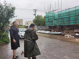 他们日夜奋战,对辖区内的厂区、道路进行安全隐患排查,及时清理断裂树枝、疏通沟渠防止道路积水;对辖区内的建筑工地进行安全隐患排查,严格检查施工现场、高空作业操作等,对工地内部分设施要求做好安全加固措施,严禁台风期间施工作业;走访关心在安置点的企业职工,为他们送上矿泉水等保障物资。
