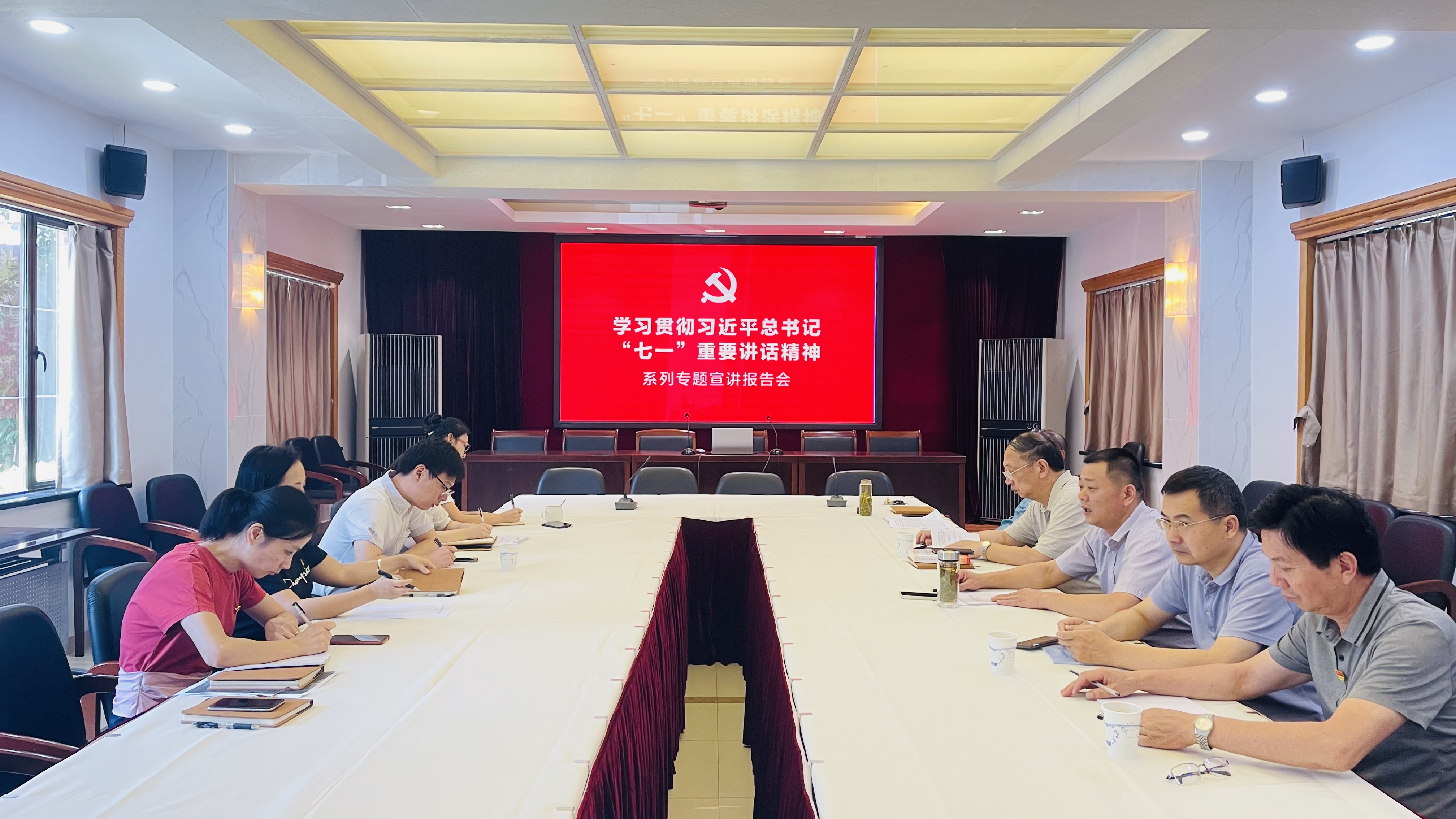 会上,与会人员集中学习了党史学习教育中央宣讲团成员、中央党史和文献研究院院长曲青山所作的“学习贯彻习近平总书记‘七一’重要讲话精神”宣讲报告会。曲青山指出,习近平总书记重要讲话是激励全党全国各族人民向第二个百年奋斗目标进军的政治宣言和行动纲领,要深入学习领会习近平总书记重要讲话提出的一系列新思想、新观点、新要求,把学习贯彻习近平总书记重要讲话精神作为一项重要的政治任务抓紧抓好。报告深入浅出、内容丰富、通俗易懂,帮助大家深化了对习近平总书记“七一”重要讲话精神的理解和把握。