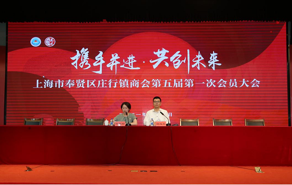 镇党委副书记朱静英主持,大会审议通过了《上海市奉贤区庄行镇商会章程(草案)》、《上海市奉贤区庄行镇商会第五届第一次会员选举办法(草案)》、《上海市奉贤区庄行镇商会第五届第一次会员大会总监票人、监票人名单(草案)》、《上海市奉贤区庄行镇商会会费标准及管理制度(草案)》。