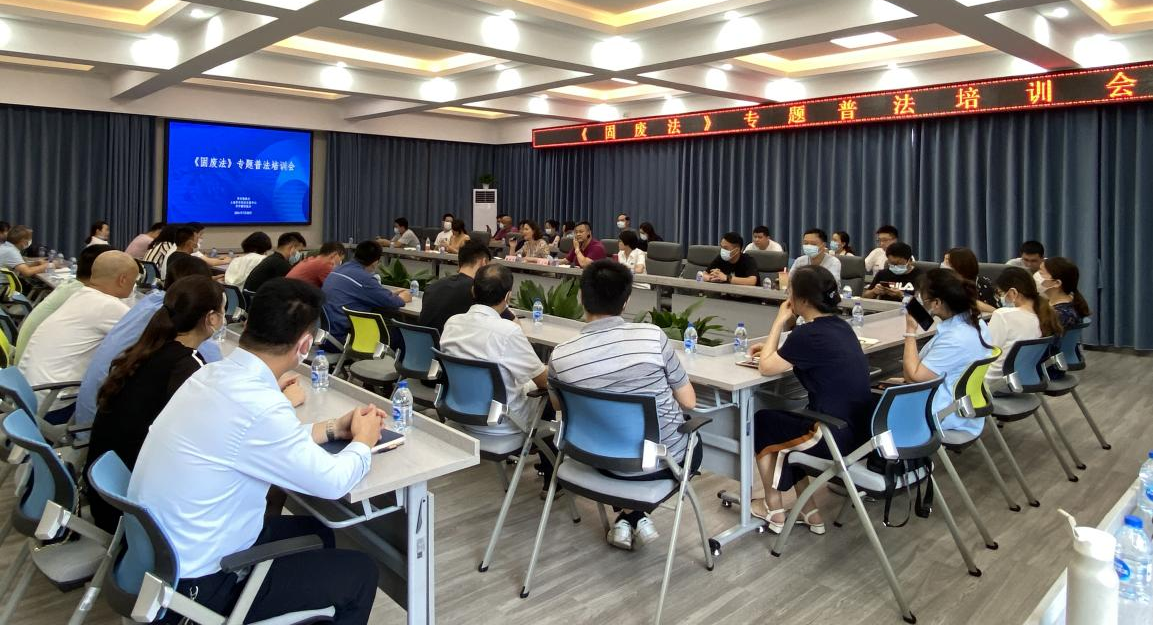 为进一步提升华亭镇企业固体废物污染环境防治法律意识,推动打好污染防治攻坚战,7月30日下午,嘉定华亭镇商会、上海华亭私营经济发展中心和华亭镇环保办共同举办了“助企发展 普法先行”《固废法》专题普法培训会,辖区内50余家企业环保负责人参加。