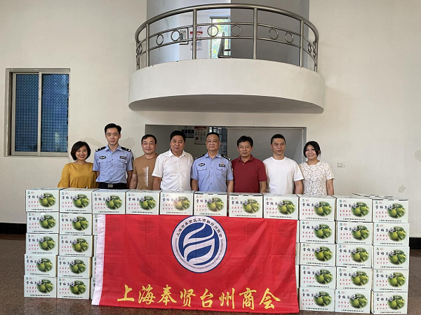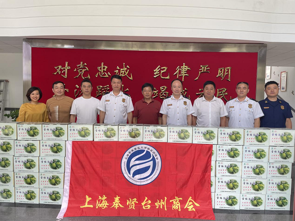 8月3日,奉贤区工商联台州商会名誉会长陈顺飞,常务副会长潘祖辉、戴美玉、王健等一行赴奉贤区交警支队、奉贤区消防救援支队慰问在酷暑下坚守的交警同志和消防同志,为他们送上慰问品,并与奉贤交警支队座谈交流。