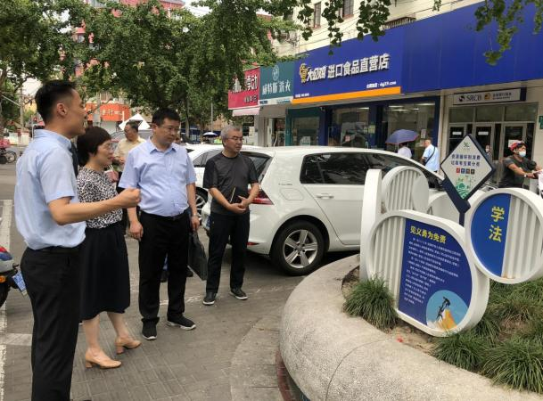会前,调研组一行前往法商驿站两个辐射阵地——丰庄路民法典诚信示范街区和真新街道人民调解委员会商会调解工作室进行参观。