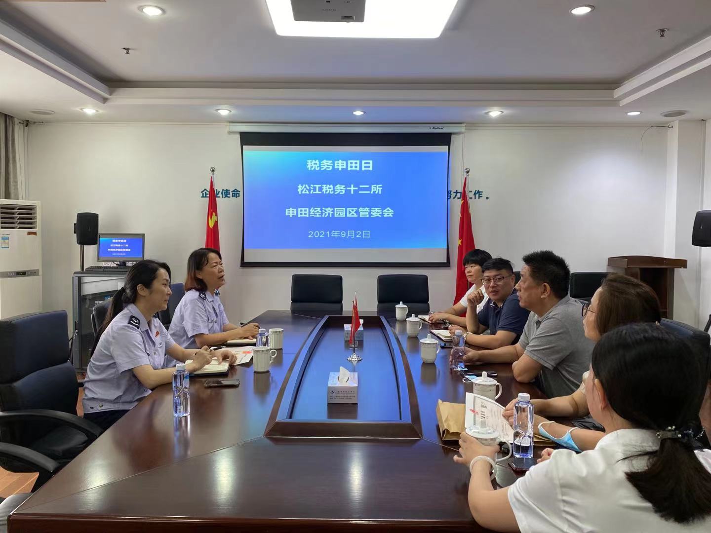9月2日,松江岳阳街道商会携手税务十二所推出“税务申田日”项目并在申田经济园区会议室开展了首场活动,税务十二所副所长俞梅、工作人员陈诚与商会、园区工作人员共同接待咨询。