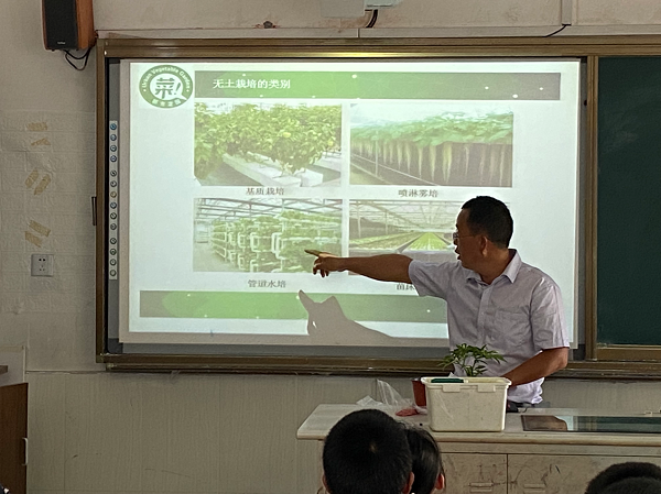 来自海湾镇商会会长单位的高级农艺师邹权文老师来到海湾镇星火学校,开展“无土栽培”进校园质量科普活动。邹权文老师通过图文并茂的课程、实物介绍,亲手种植蔬菜和提问抢答,为该校七年级学生带来了一堂有质量的“新”课。