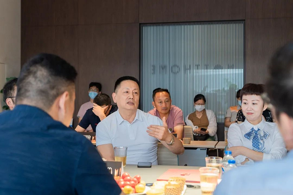 金叶花代表西渡街道向青村镇的优秀企业家们表示了欢迎及感谢。她表示,作为经济强镇及质量工作的领跑地区,希望青村镇商会企业家可以多多走进西渡、传经送宝,形成美丽健康产业集聚,并通过质量工作促进经济三方面的发展:一是借助文信家具展示空间,集中展示西渡及青村联盟产品,形成企业产业共享平台,打造一站式服务;二是确定产业发展方向,形成由传统制造业向先进制造业转变,以一流品质打造产业智能化、数字化转型;三是期待与青村镇的全方位合作,希望以这次互动为契机,比学赶超,一起“破圈、超越、融合”,促进西渡经济快速发展。