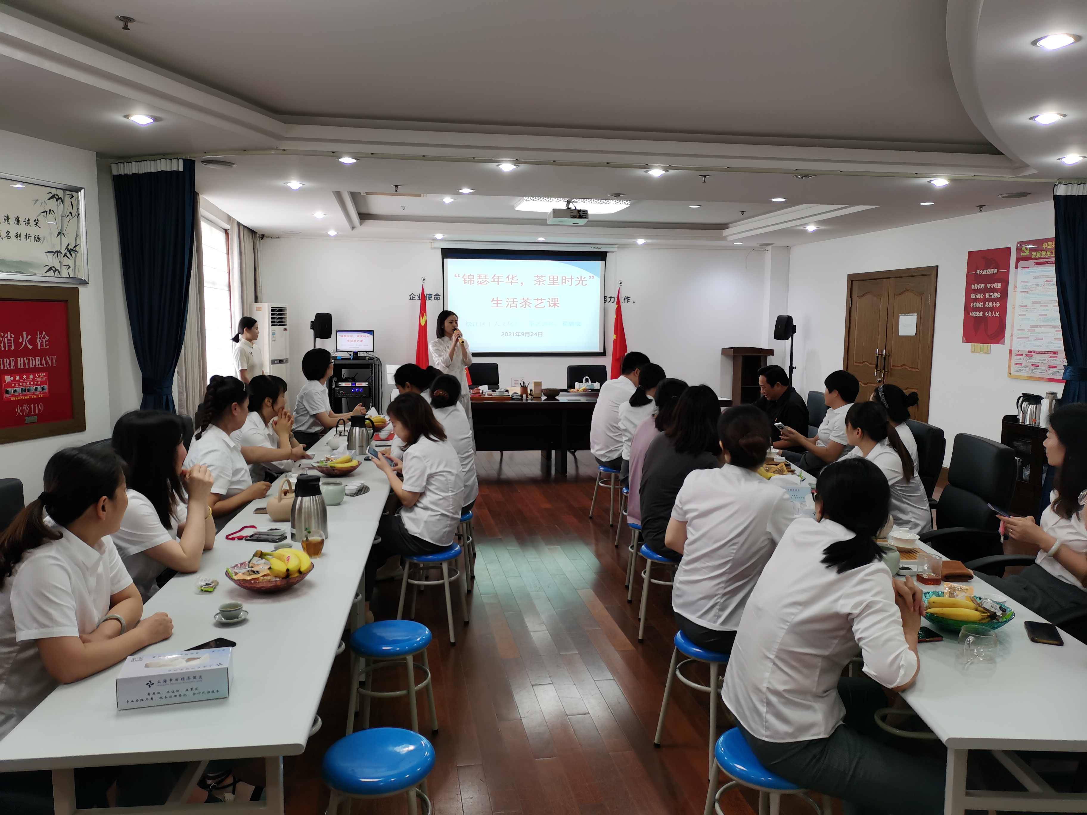 9月24日下午,松江岳阳街道商会开展“景瑟年华,茶里时光”主题茶艺沙龙,邀请会员企业代表近20人参与,结合观茶、猜茶、品茶等环节普及中国茶文化,又通过亲自泡茶、品茶的形式让大家深入了解了茶文化,拉近距离,增进彼此间的感情。