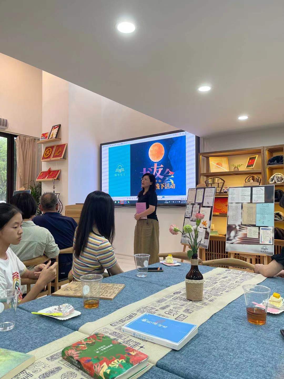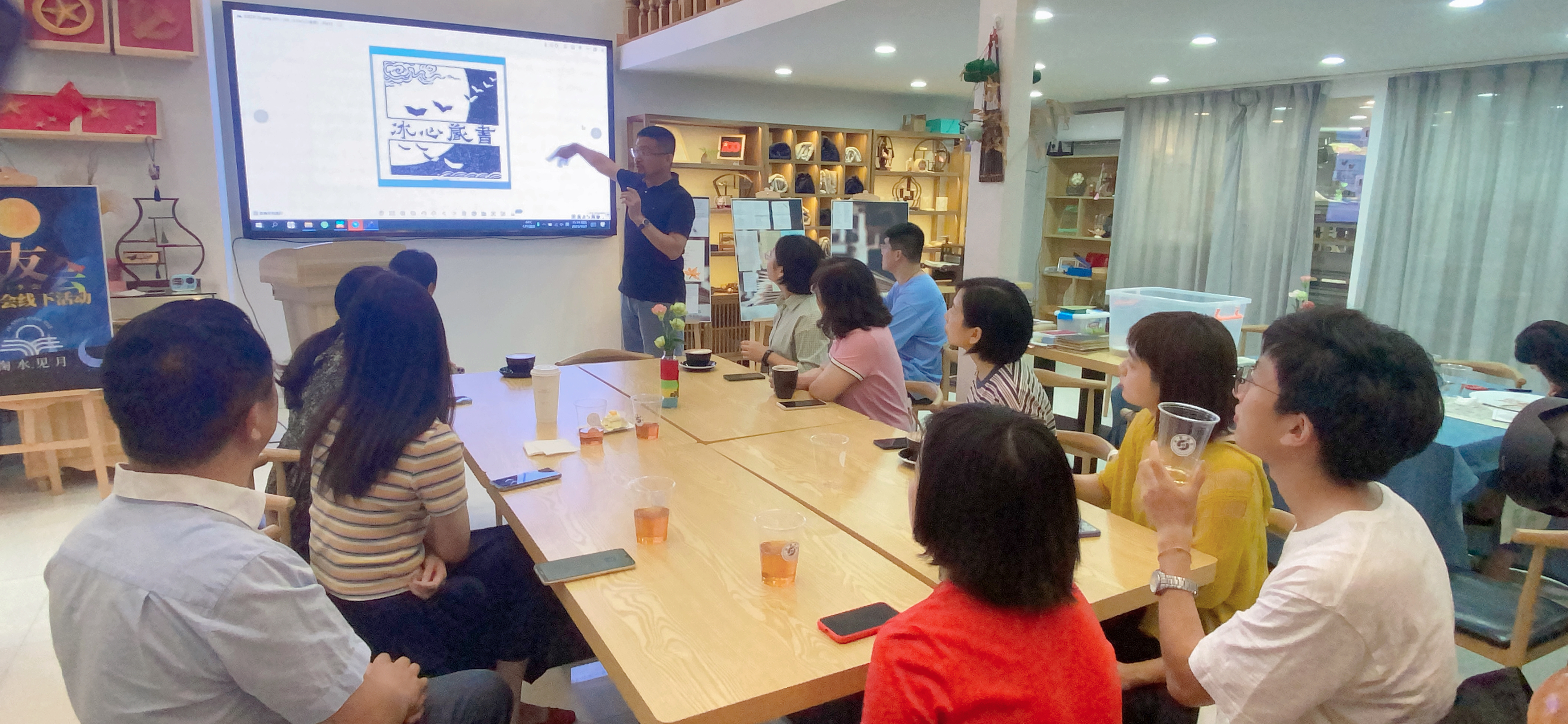 为了不断提升商会活动内涵,增加益企直通车品牌建设影响力,10月7日下午,嘉定区菊园新区商会携手掬水见月书友会,在水咖啡文创空间举办“暗号是首诗”秋季阅读分享会,来自会员企业和各行业近40人参加阅读分享活动。