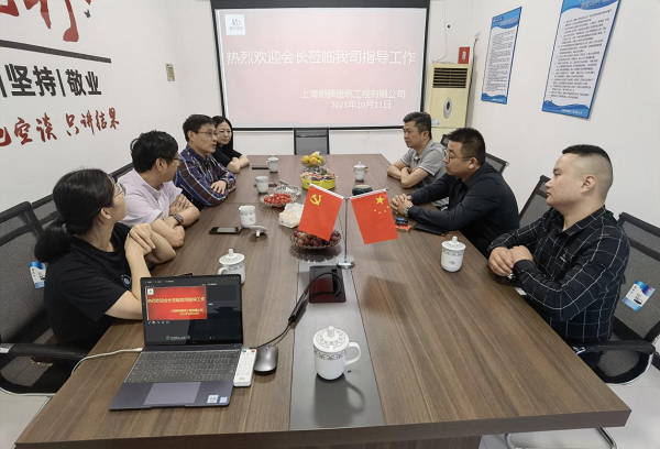 为深入了解会员企业的生产、经营状况及其发展需求,充分发挥商会的桥梁和纽带作用,进一步提升服务水平,10月11日下午,奉贤区工商联安徽商会会长路敏、秘书长李浩辉及部分企业家代表来到位于奉城镇的会员企业——上海朗驿建筑工程有限公司走访调研。区工商联安徽商会常务副会长、四队队长、上海朗驿建筑工程有限公司总经理范磊热情接待。