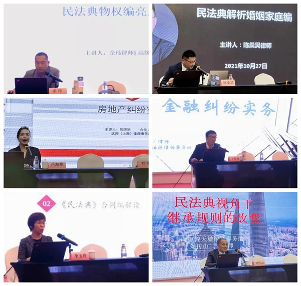 本次培训班由新区司法局专业调解工作处副处长刘军担任主持人,课程内容包含《民法典》解析合同篇、物权篇、继承篇、婚姻家庭篇,金融纠纷实务与房地产纠纷实务讲解。还邀请了李玉玲、余玮、卞栋樑、岳海艳、刘传山、陈燊昊六位律师授课。培训课上六位讲师理念纷迭、各展实力,能言善讲、尽见真功,这些讲座或深刻、或睿智、或思辨,异彩纷呈。讲座全面系统,参与培训的各位专职调解员及律师同僚在润物细无声中得到专业提升。