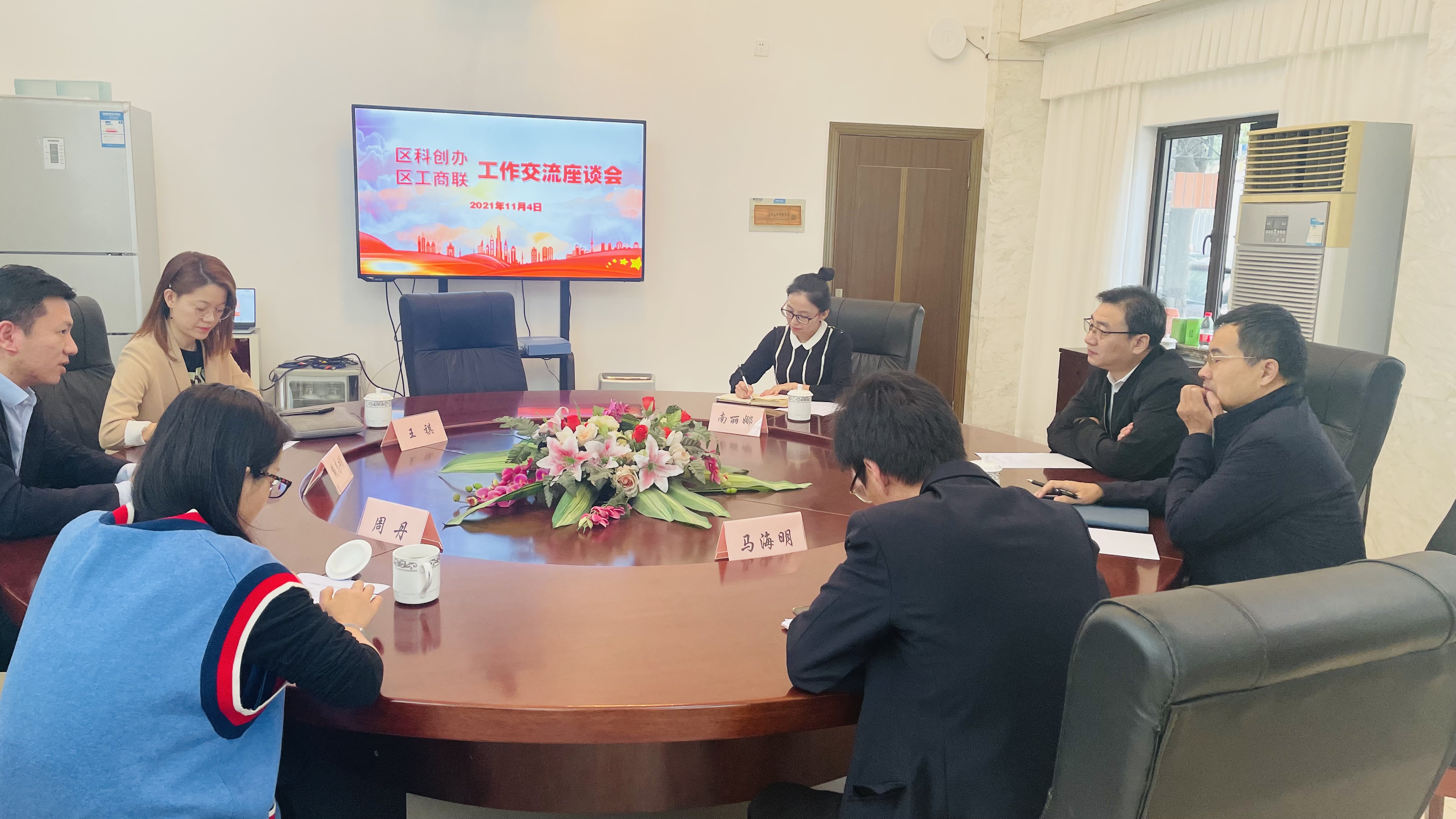 11月4日上午,松江G60产业组组长、区科创办副主任戴志明一行赴松江区工商联,与区委统战部副部长、区工商联党组书记沈伟,区工商联党组成员、副主席袁建峰等进行座谈交流。