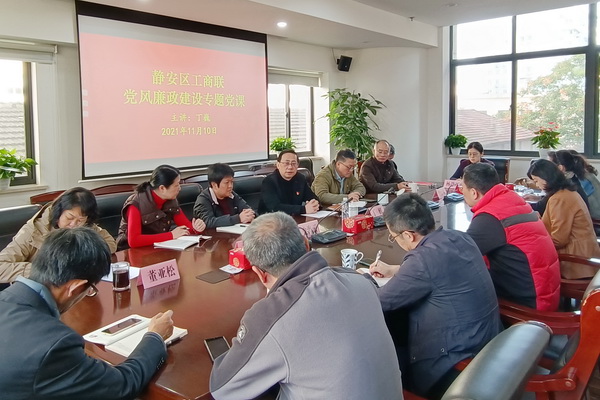 11月10日,静安区工商联召开党组中心组(扩大)举行集体学习会暨党风廉政建设专题党课。区委统战部副部长、区工商联党组书记李帆主持。区纪委监委第二派驻纪检监察组组长丁巍到会指导并授课。