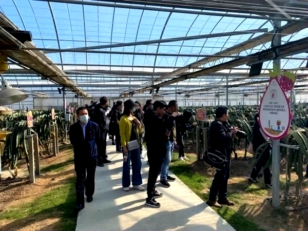 10月28日上午,学员们赴合庆镇火龙果基地考察学习。该基地是合庆镇人民政府为发展高质、高产、高经济效益的农业,带动农民增收而组建成立的现代化农业科技有限公司。通过果、花、枝条的综合开发利用及火龙果酵素研发等深加工技术,亩产值可达9万元以上,是普通种植的2到3倍。耳闻目睹,大家感触深刻。