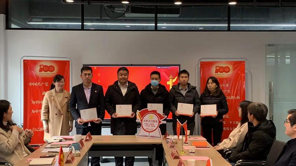区委组织部“两新”组织党建科科长黄颖为党员送上一张特别的贺卡
