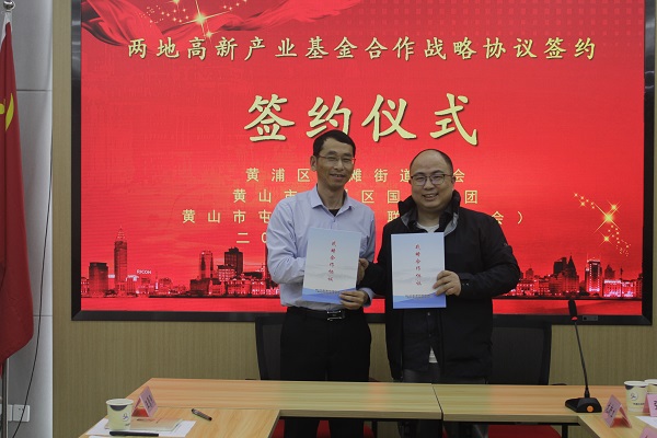 孙辉介绍了合作协议签约背景及两地企业合作交流成果,并与茅岩签订了党建联建共促两地企业合作发展协议。黄山市屯溪区国投集团副总经理、产投公司经理汪黎明与上海新生基金投资管理有限公司董事长龙新生签订了高新技术装备产业基金成立合作战略协议。