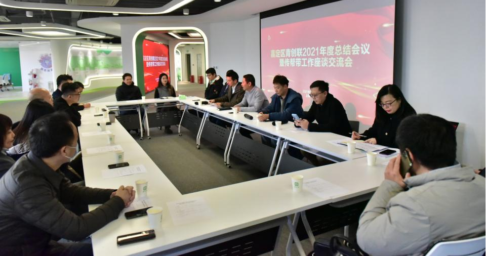12月29日下午,嘉定区青创联在趣头条公司召开2021年度总结会议暨传帮带工作座谈交流会,区委统战部副部长、区工商联党组书记王宇伟出席会议并讲话,区工商联党组成员、副主席陈攀主持会议,区青创联会长、上海优耐特斯压缩机有限公司总经理孙原野以及副会长、秘书长、参与传帮带工作的年轻一代民营经济人士代表等20人参加了会议。