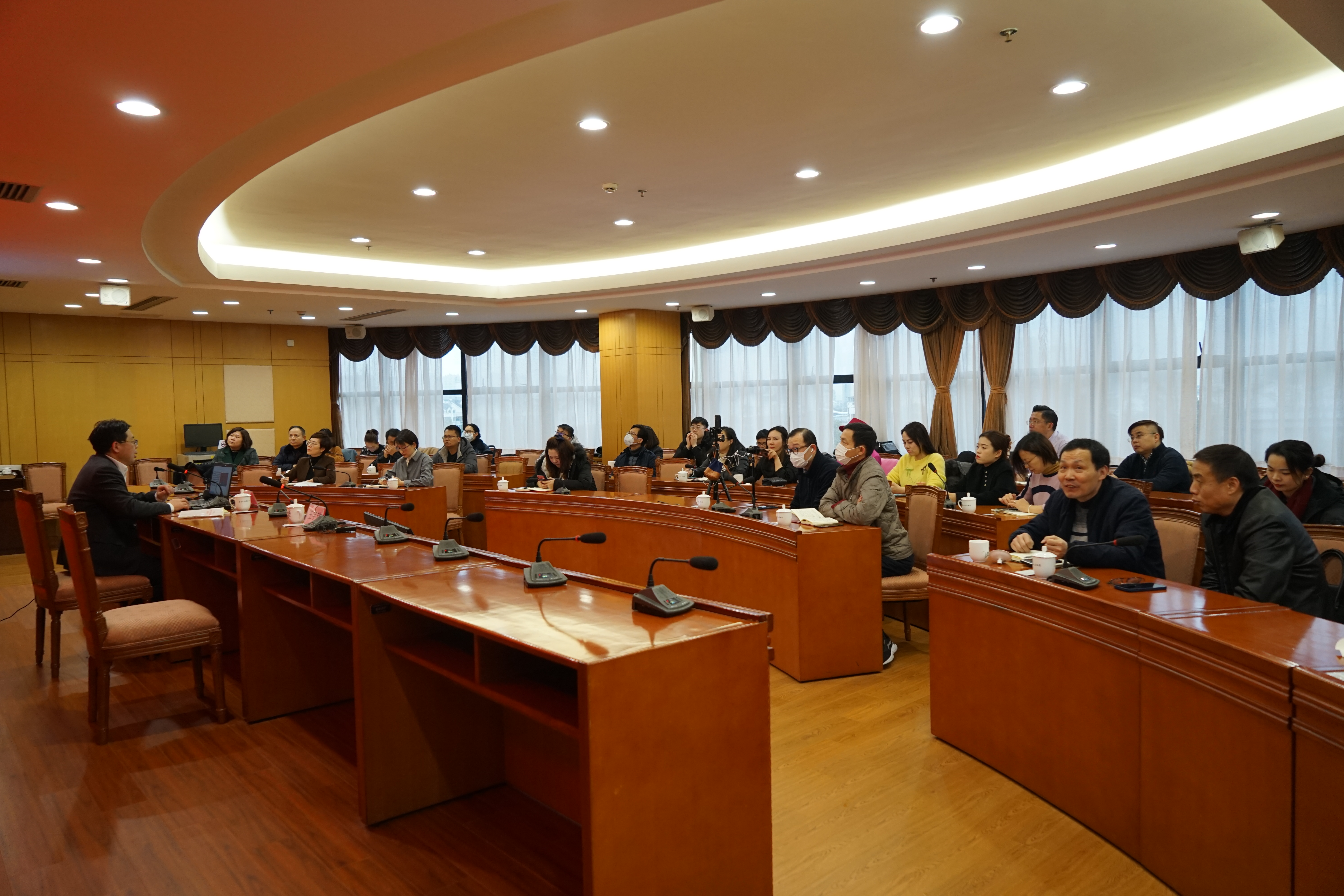 因疫情防控要求,本次“嘉商大讲堂”采取线上线下同步进行,现场参加的有青创联企业家代表、区工商联全体机关干部、各基层商会党支部书记、秘书长;线上收看的有区工商联(总商会)全体执委会成员、各基层商会会长、副会长。