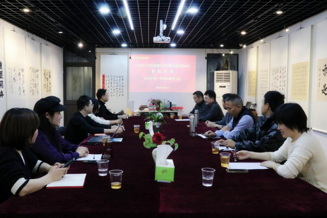 1月6日下午,奉贤区工商联江苏商会在商会贤商之家——海风画院召开上海烈士纪念设施守护崇敬志愿者服务队奉贤区队2022年第一季度志愿者大会。队长韩佩伦、副队长顾伟峰等十余名队员出席会议,商会秘书处参加。会议由韩佩伦主持。