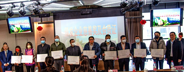 大会还为新加入商会的会员单位颁发了会员证,为捐资助学企业颁发了慈善奖。