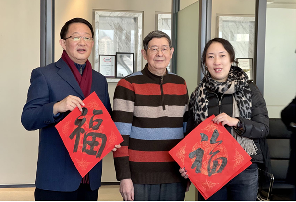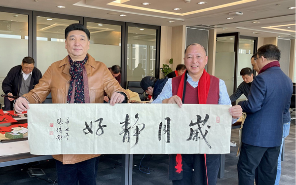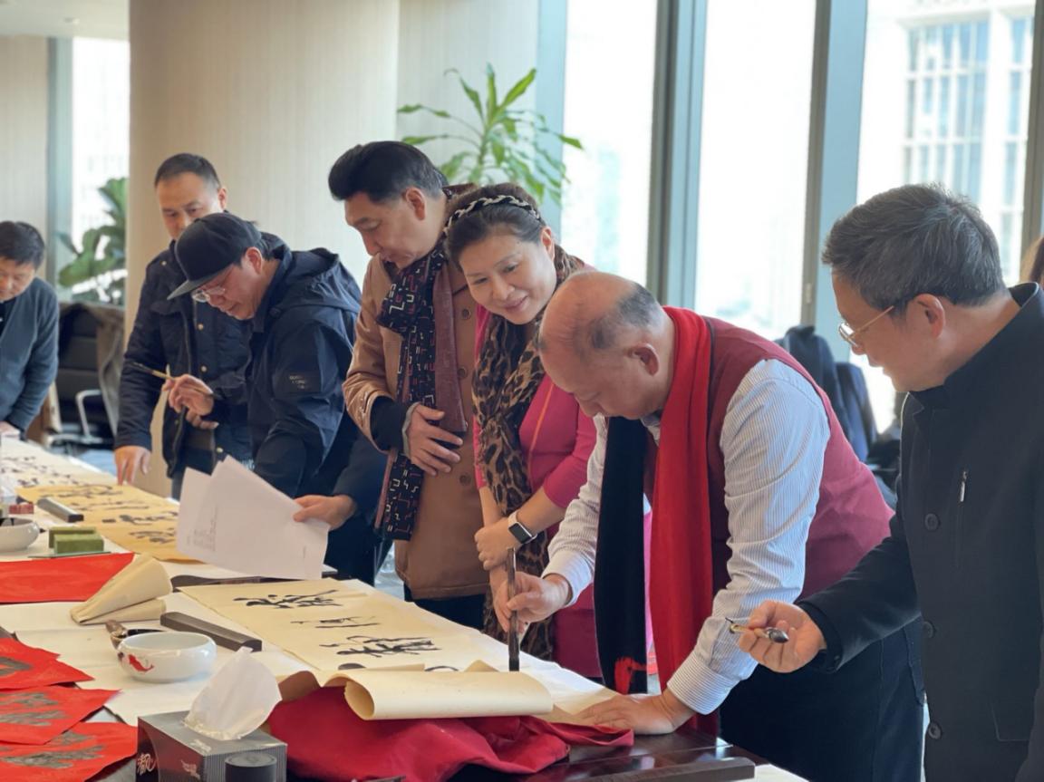 “书墨飘香送吉祥,暖心相伴迎新年”,王国贤少将、孙进少将、晁玉奎、刘树人、张伟舫、张纪怀、何秋生、高庆落、程一鸣、李政等十位书法家现场挥毫泼墨、笔走龙蛇,为小东门街道商会的企业送上满满的新年祝福。美好的祝福给寒冷的天气带来无限的暖意,现场一片欢声笑语,气氛热烈,年味十足。
