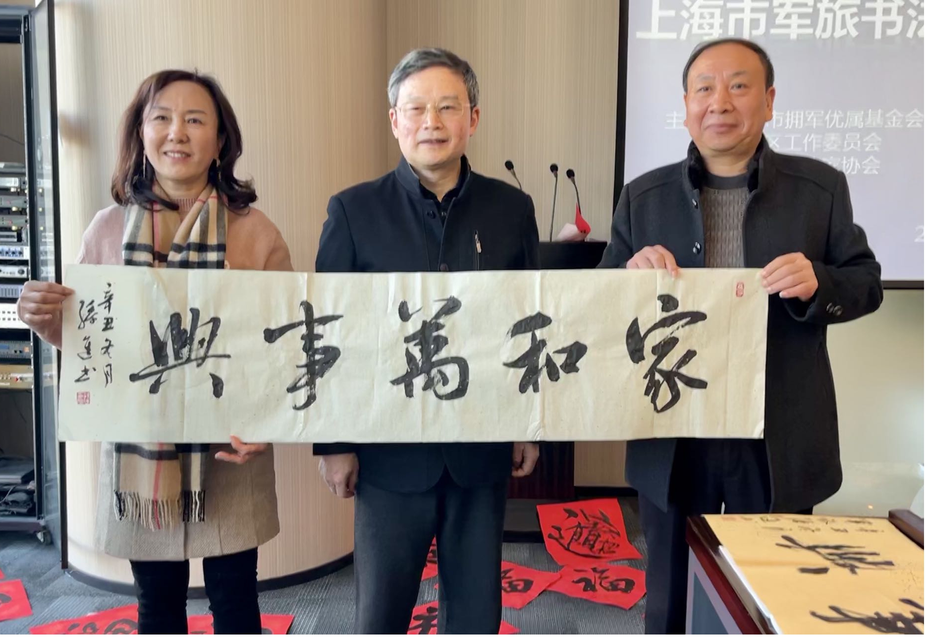 上海市拥军优属基金会黄浦区工作委员会会长王海银,副会长刘国宪、徐先忠,黄浦区退役军人事务局副局长周恩亮,黄浦区书法家协会主席张伟舫,小东门街道办事处副主任、商会分管同志胡佳,小东门街道商会会长程娅骅,上海市邦信阳中建中汇律师事务所书记赵亮波出席活动。