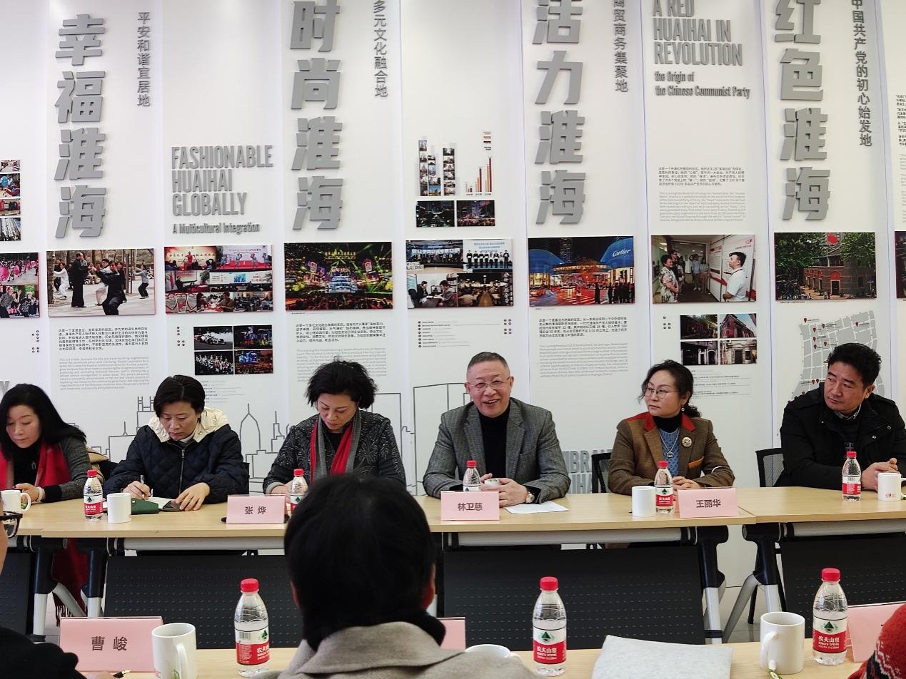 年前,市工商联商会部有关同志陪同虹口区工商联副主席韩晓峰、曹俊,民营企业家代表周敏、王晔,到黄浦区淮海中路街道商会调研交流。黄浦区总商会副会长、淮海中路街道商会党支部书记、会长林卫慈,黄浦区工商联(总商会)执委、淮海中路街道商会理事代表王丽华,商会会员代表张烨、潘虹等参加调研。