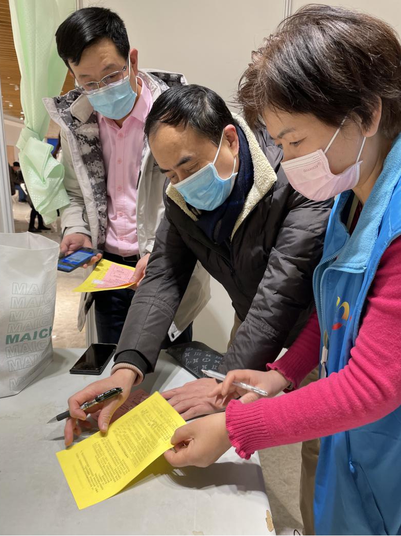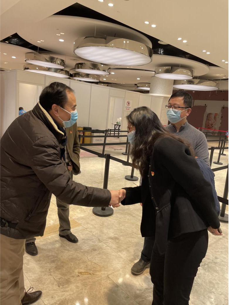 年前,黄浦区外滩街道商会会长、上海仟宸置业发展有限公司董事长孙辉,商会企业家——上海新梅会务有限公司董事长顾志新、上海勃铈精密金属材料有限公司董事长刘光泽等,来到新世界大丸百货接种点慰问疫苗接种一线工作者。