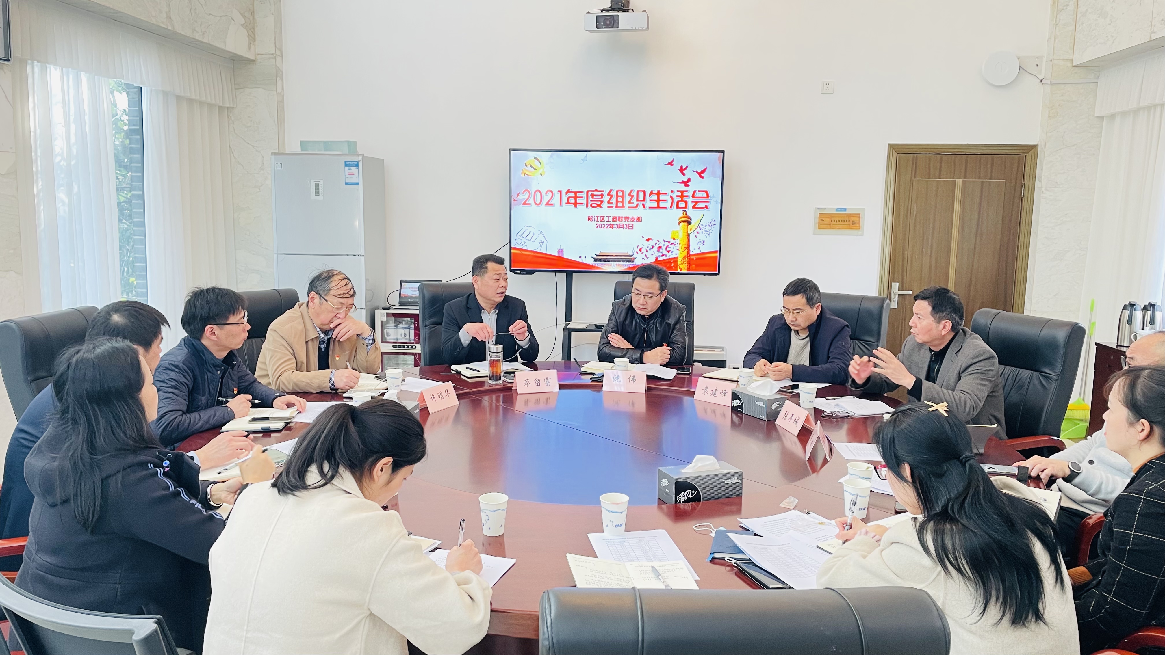 3月3日,松江区工商联党支部召开2021年度组织生活会。区委统战部副部长、区工商联党组书记沈伟出席。