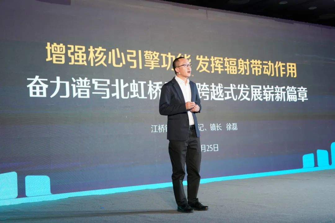 徐磊全面介绍北虹桥商务区发展情况。在虹桥国际开放枢纽“一核两带”功能布局下,北虹桥被赋予了“开放北虹桥,创新领航地”的“新定位”;下一步将构建“一核聚能,一带润城,三轴联动,四区共融”的“新格局”;目前正聚力打造“一区一城一湾”的“新空间”;在“新项目与新平台”方面,将依托现有重点企业及新入驻企业,以重点发展创新经济为主要特色,重点聚焦总部研发、高端制造、医疗大健康、数字经济、新材料、新能源等产业发展,并积极打造医疗器械、数字贸易、鲜味产业三大平台。同时,在交通、教育、医疗、政策及服务等方面全面迎来“新保障与新服务”。地”发展定位,抢抓虹桥国际开放枢纽建设重大战略机遇,努力开创经济社会高质量发展崭新局面。过程中,江桥将坚持稳字当头、稳中求进,牢固树立“项目为王、企业至上”理念,全力以赴抓招商、促投资、强服务、优环境。全力当好服务企业的金牌“店小二”,努力把江桥打造成为营商环境新高地,成为企业和人才投资兴业的热土。希望各位企业家持续深耕江桥,心无旁骛把企业做优做强,同时把更多好项目、好企业、优秀人才推荐到江桥。