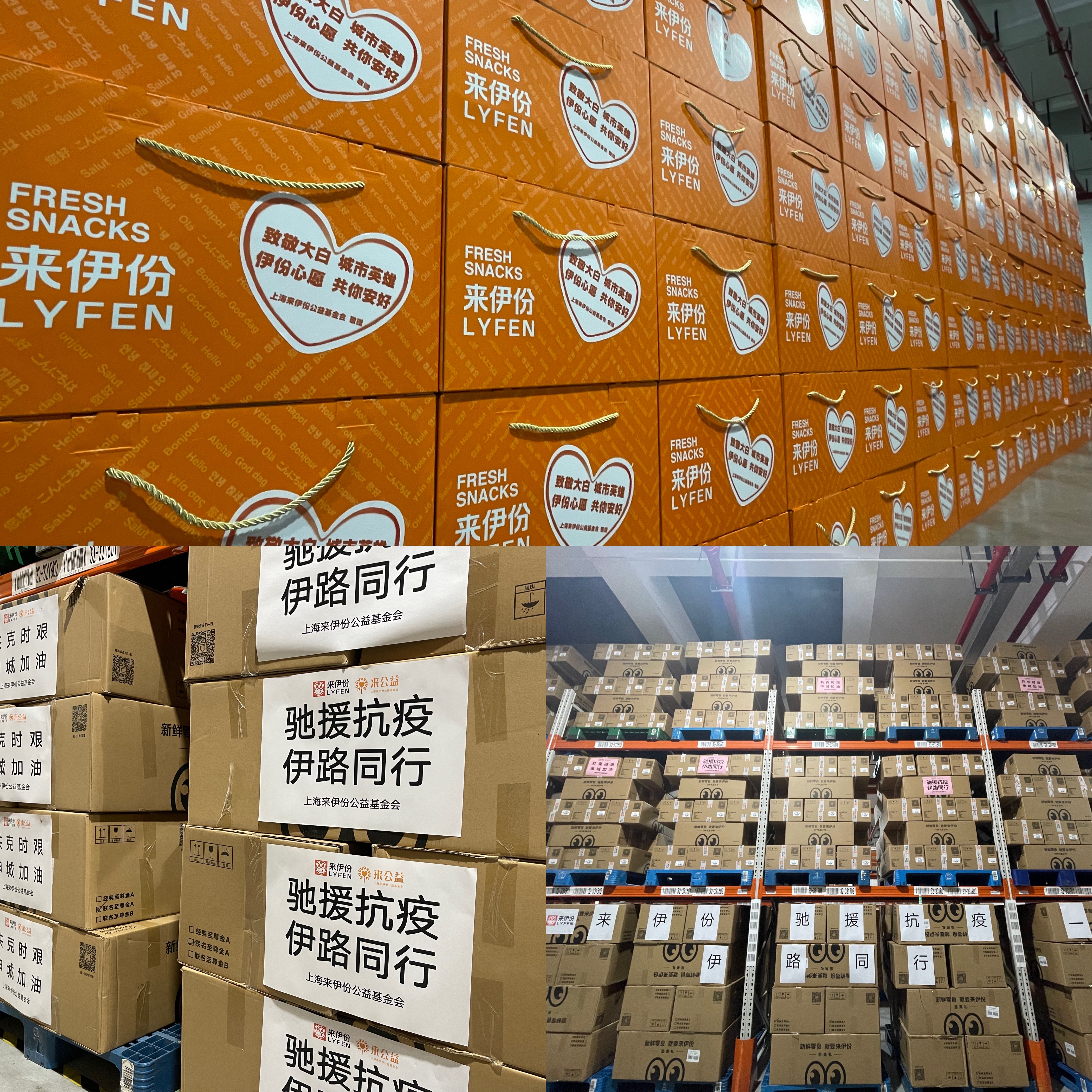 此次疫情一直牵动着松江区政协副主席、区工商联主席、区总商会会长、来伊份总裁郁瑞芬的心。3月3日,当九里亭永辉超市疫情刚露头的时候,来伊份就恢复了防疫领导小组。当排查全面铺开时,郁瑞芬第一时间联系市、区疾控部门,向松江区防疫指挥中心主动捐赠7000份爱心礼包(牛奶、糕点、坚果、肉脯等),给到覆盖27处集中的筛查小区、医院、社区、救助点的大白们等;与此同时,来伊份还向所在的九亭镇政府、疾控中心的工作人员捐赠了250多份补给物资,向上海交大捐赠650份爱心礼包。截至3月16日,来伊份共捐赠防疫物品80万袋、数万箱物资,这些物资将全部用于一线抗疫人员、志愿者等防疫物资保障等需求。