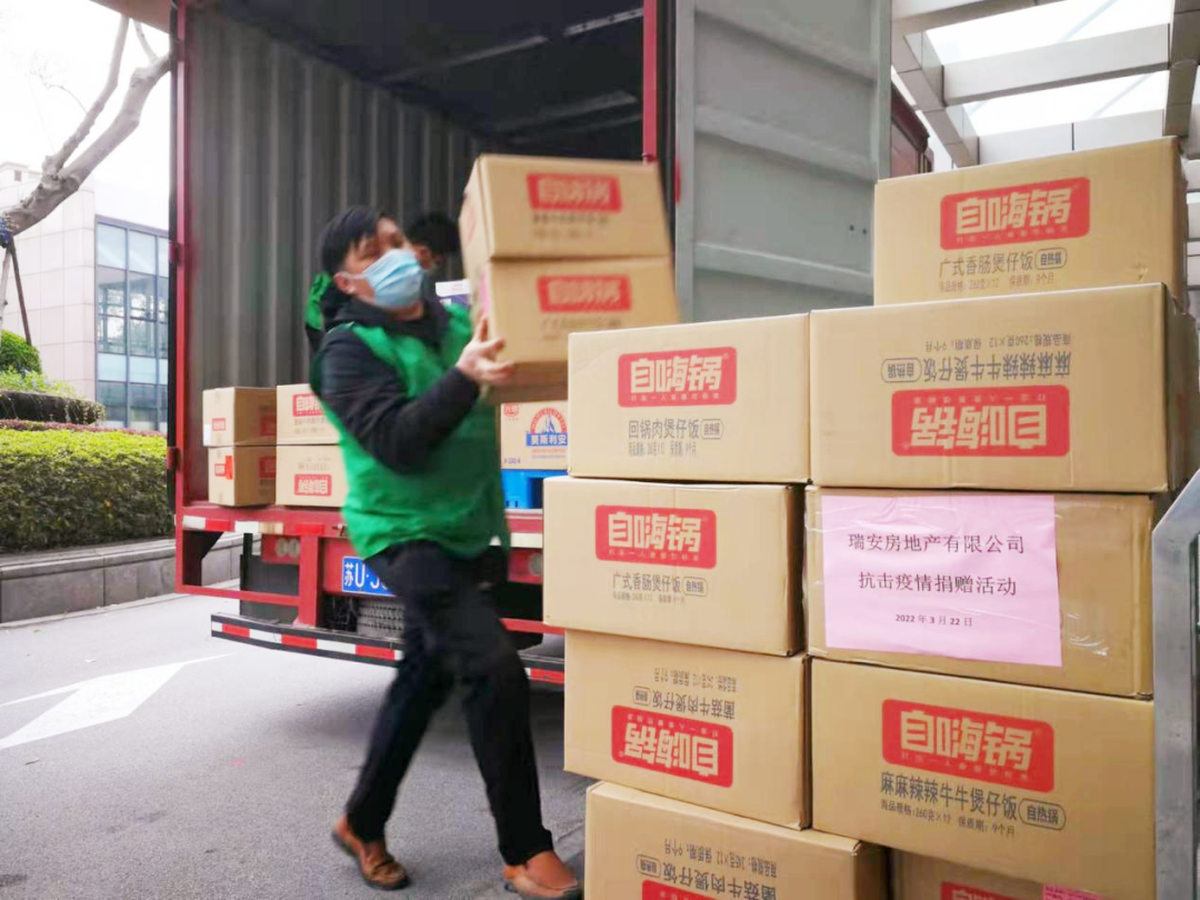 瑞安房地产有限公司通过上海市光彩事业促进会向嘉定区光彩事业促进会捐赠人民币40万元。区光彩会第一时间通过区新嘉商投紧急购买了自热饭、酸牛奶、八宝粥、润喉糖、矿泉水等慰问物资,为抗疫一线的医护人员、12个街镇的村(居)志愿者们提供保障,用实际行动彰显社会大爱,践行企业社会责任。徐行社区卫生中心医护人员表示,医院里后勤保障很到位,有很多爱心企业和组织送物资送温暖。虽然近期点位上医务任务还是很重,天气也很冷,但大家心里都是暖暖的。劳动村干部表示,爱心企业捐赠的牛奶、自热食品、润喉糖等后勤保障物资是雪中送炭,让一线人员充分感受到了全社会的关爱和温暖,也体现了全区各界众志成城的抗疫力量。
