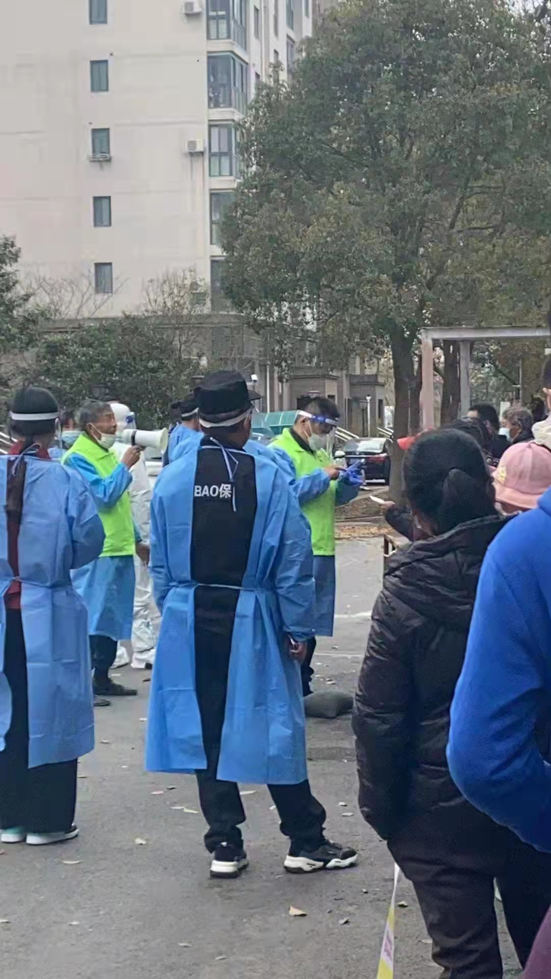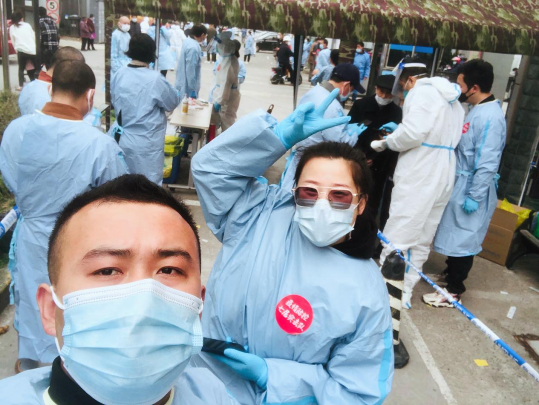 常务副会长齐永超同样第一时间申请社区招募核酸志愿者。包裹在白色的防护服和面罩之下的他积极配合医护人员、基层工作人员,迅速熟悉工作流程,在核酸检测采样区域维持现场秩序。连续工作下来,虽然很辛苦,但他没有丝毫的懈怠,始终以饱满的精神和积极的状态投入到志愿服务中去。