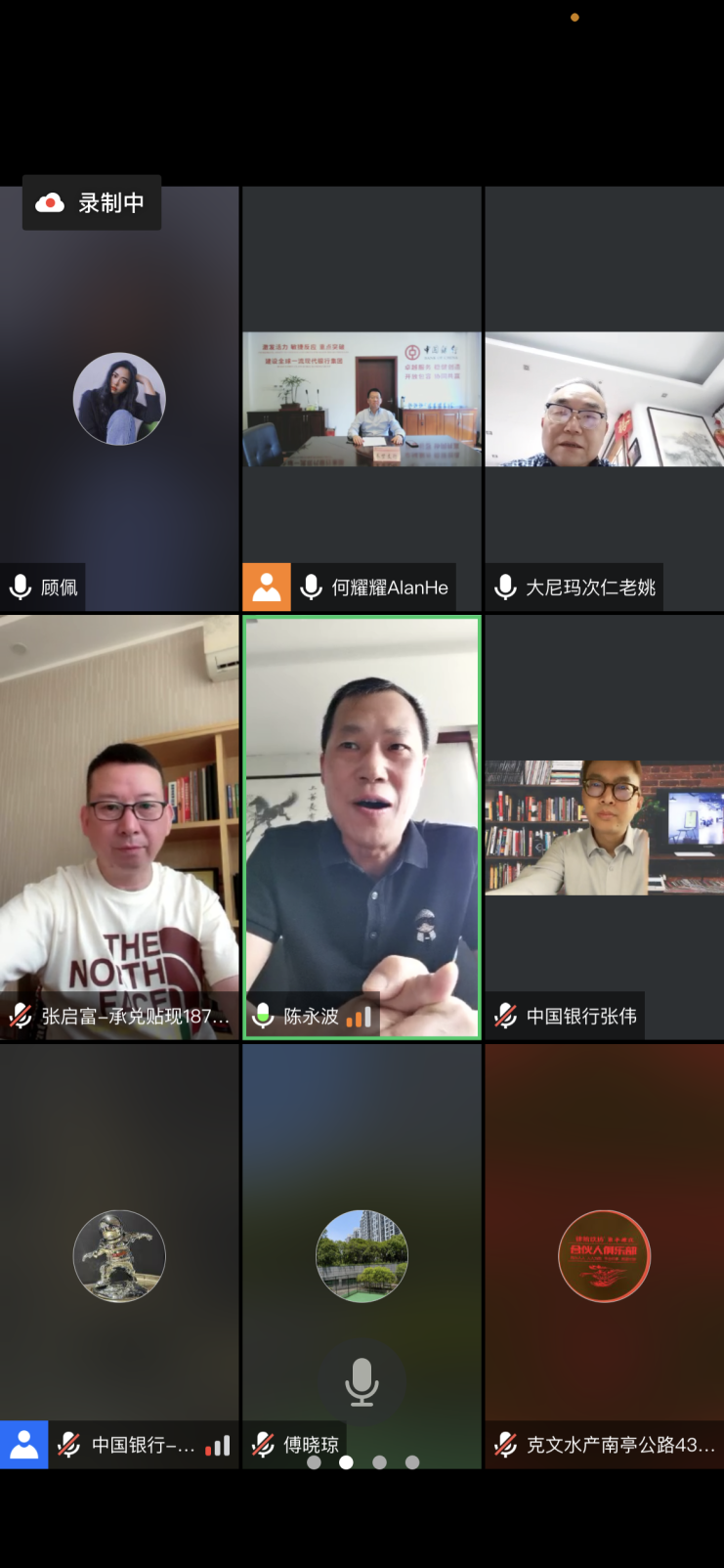 在奉贤区工商联的指导关心下,为了更好地帮助会员企业解决复工复产中急需的资金短缺问题、了解和掌握疫情防控下的金融经济政策,5月27日,奉贤台州商会借助腾讯会议举行“银会携手 助企纾困”专题活动。活动由商会秘书处主持,邀请到中国银行奉贤支行行长金星和中国银行上海市分行普惠金融事业部、产品与场景拓展团队主管周梦奇老师。