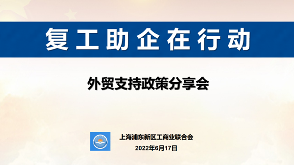为贯彻落实中央、市、区稳经济一揽子政策措施,切实帮助外贸企业纾困,加大出口信用保险支持力度,着力稳定外资外贸企业预期和信心,助力推进企业恢复发展,6月17日下午,浦东新区工商联举办“复工助企在行动”系列活动(第2期)——外贸支持政策分享会,进一步加强政策供给和服务支撑。浦东新区55家外贸型民营企业线上出席。