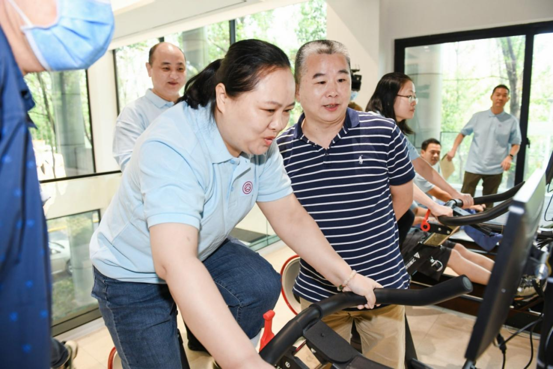 换上运动装备,骑上智能单车,随着20多名商会企业职工开始运动,各项运动数据逐渐呈现;搭载了智能系统的划船机,可以将运动注意事项、设备操作指南显示在屏幕上;站在指定识别区域跳绳,设备开始高速运转,实时捕捉跳绳动作,显示屏上显示累计计数,参与的职工只需扫描现场二维码,即可参加团体赛和个人赛。本次大赛以“智能体育”为主题,以大数据等技术为支撑,依托5G云控云端发力,现场参赛职工可以和不同会员单位的职工,在不同时间、不同空间进行隔空比赛、一起竞技,打破了传统体育比赛在时间和空间上的局限,真正实现了线下比赛线上办。