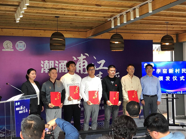 陶颖和顾壹壹为“李窑新村民”颁发荣誉称号。