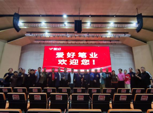 考察团受到了爱好笔业有限公司总经理张恩敏的热诚欢迎,一行人在公司相关负责人的陪同下,观看了公司的宣传视频,听取了模具制作、数字化与智能化管理流程等情况介绍,参观了厂区幼儿园、生产车间、办公大楼、可容纳3000余个座位的职工文化礼堂、党建文化墙及投资1000余万元的绿化园林等充满温馨和谐的企业环境。