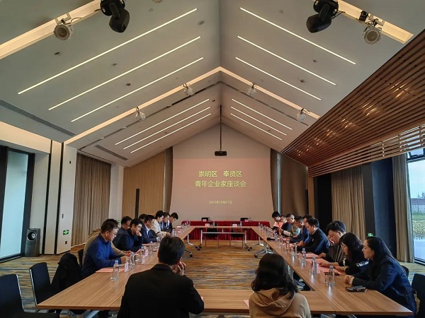 参观结束后,两区青年企业家进行座谈交流,崇明区青创联会长陆贤介绍了崇明区青创联的情况,区青商会执行会长陈沈融介绍了奉贤区青商会的情况,企业家代表积极发言,分享创业故事。