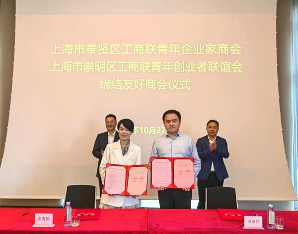 会后,奉贤区青商会与崇明区青创联签订了友好商会合作协议。