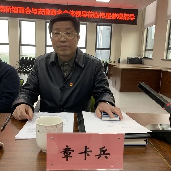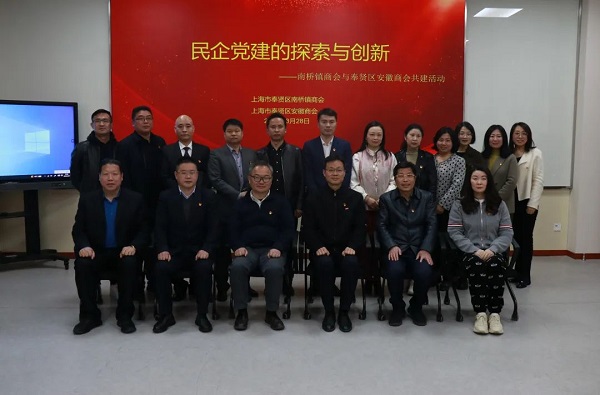 南桥镇商会党支部书记章卡兵、区安徽商会会长潘诗良就各自商会党支部下阶段工作进行了发言交流。
