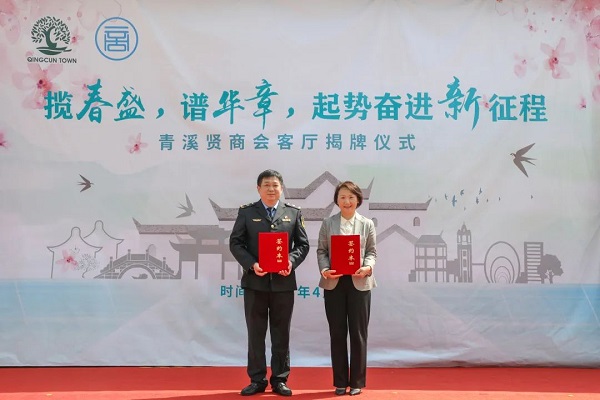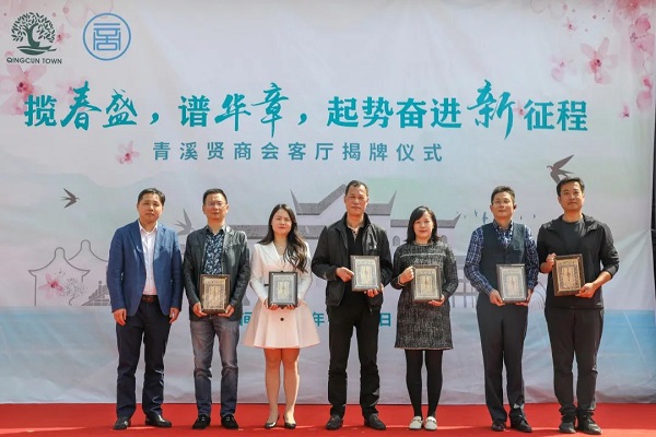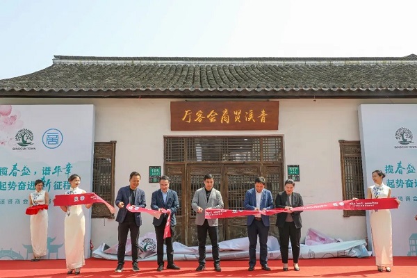 参加活动的嘉宾为青溪“贤商会客厅”剪彩揭牌。