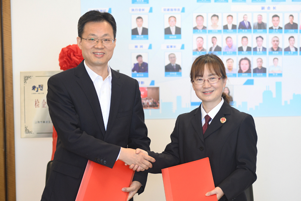 区检察院与区工商联签订《奉贤区关于建立“检企合作”观护帮扶基地的实施办法》,为“检企合作观护帮扶基地”揭牌。