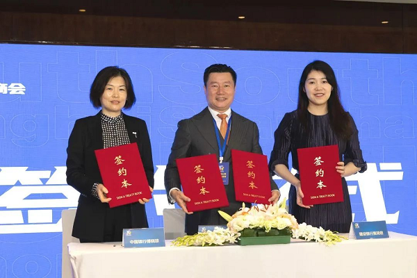 建设银行奉贤支行行长黄琦君、中国银行奉贤支行行长金星对南上海宠物经济商会集中授信各10亿元,并对宠物经济金融扶持政策进行介绍。