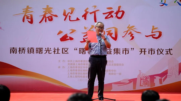 火红的五月,奏响青春之歌,点燃公益热情。5月13日上午,奉贤区南桥镇商会“百企联百区”青商会一组与南桥镇曙光社区等党建共建单位开展“曙馨公益集市”联盟活动,奉贤区团委副书记郑雷刚、南桥镇党委副书记王建恩、南桥镇党委委员黄静、南桥镇青商会会长潘诗良、南桥镇商会“百企联百区”青商会一组成员出席活动,与曙光社区“家·人”单位及团体代表共同鸣锣开市。